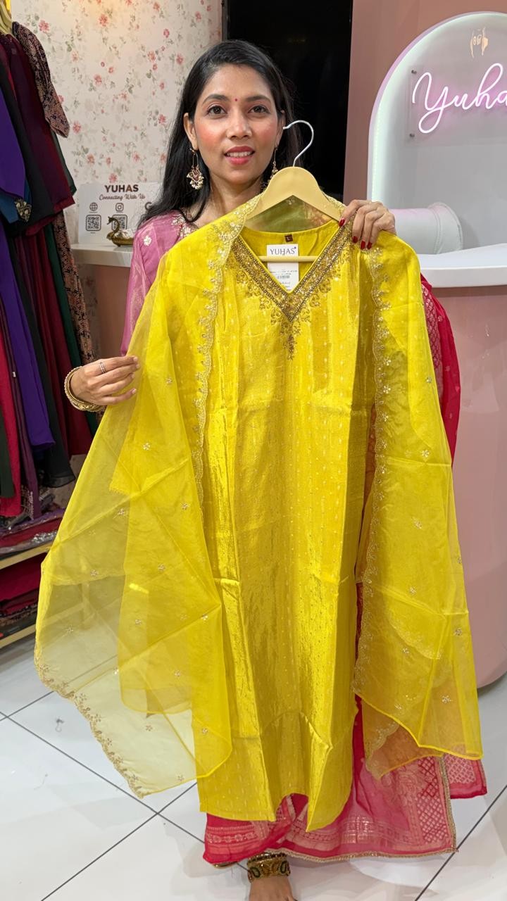 Premium Golden Glassy Salwar