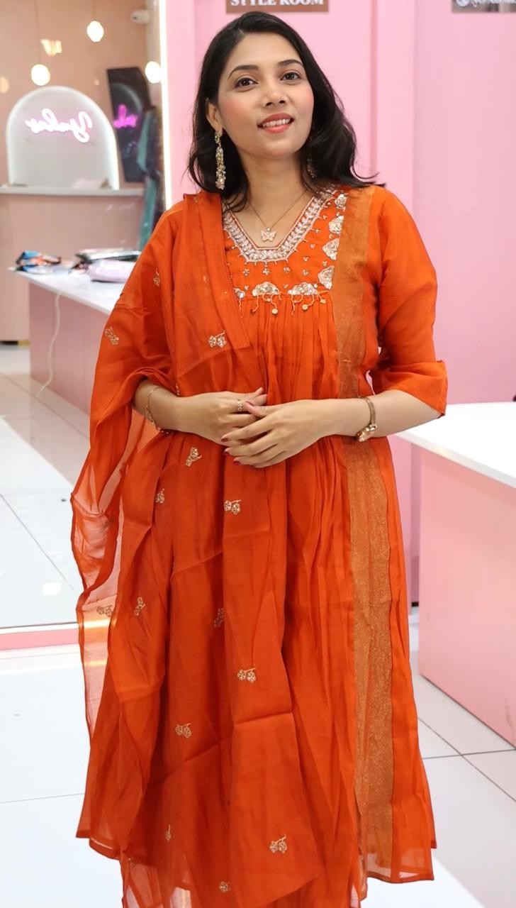 Premium Rustic Orange Raw Silk Anarkali Salwar