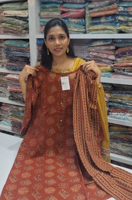 சிவப்பு காஜி பட்டு அனார்கலி -